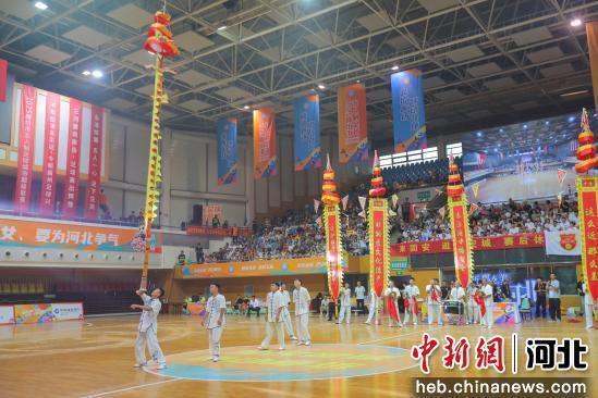 图为五人制足球赛赛前非遗表演。 王巍 摄“足球比赛、特色美食、体育用品、文创专区应有尽有,真是不虚此行!”近日,漫步廊坊市体育馆周边的体育特色市集,市民闫苗苗不仅感受到足球的激情,还体验了廊坊非遗的独特魅力,品尝了独具地方特色的风味美食。
