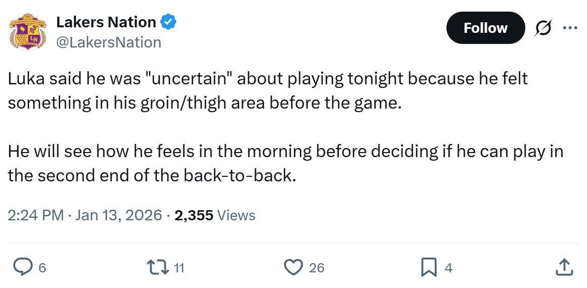 值得一提的是,赛后被问到赛前出战状态为何是不确定时,东契奇表示那是因为在比赛开始前,自己感到腹股沟和大腿区域有不适。